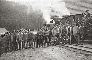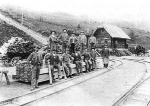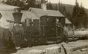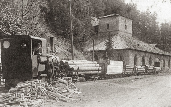 Fuhrwerke die enge und steile Pfaffensattelstraße befahren mussten. Die Geschichte der Waldbahn begann eigentlich schon mit dem Jahr 1899, als der Graf , er war Eigentümer des Forstgutes Frauenwald, einige schmale Streifen am rechten Feistritzufer von der Erzdiözese Wien für 30 Jahre pachtete. Planer und Bauleiter der Waldbahn war Forstmeister Ing. Roman Tichy (1853 - 1930). Die erste Teilstrecke zwischen der ehemaligen Loimeiersäge (nähe Mirsegg, ca. 4,5 km von Rettenegg entfernt) und der Station Ambach (am Fuße des Feistritzsattels) wurde noch als Pferdebahn betrieben. Nach und nach erfolgte der Ausbau des Feistritztalaufzuges (von der Talstation Ambach bis zum Feistritzsattel / Sattelbahnhof), der Sattelstrecke und des Bremsbergs in Richtung Fröschnitztal. 1910 wurde vom Pferde- auf Dampfbetrieb umgestellt und 1922 war die 22 km lange Strecke mit der Spurweite von 600 mm zwischen Rettenegg und Steinhaus am Semmering fertig gestellt und voll betriebsfähig. |